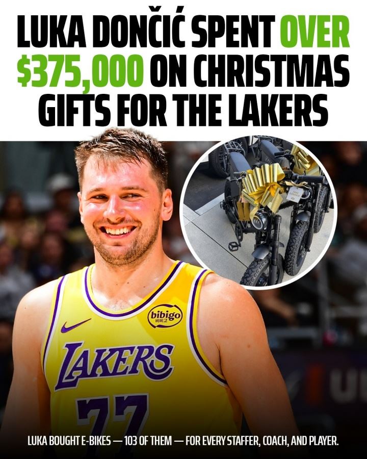 东契奇给湖人全员送电动自行车,据美媒报道,该款电动自行车单价约3650美元,东契奇送出100多辆花费超37.5万美元,约合人民币264万元。
